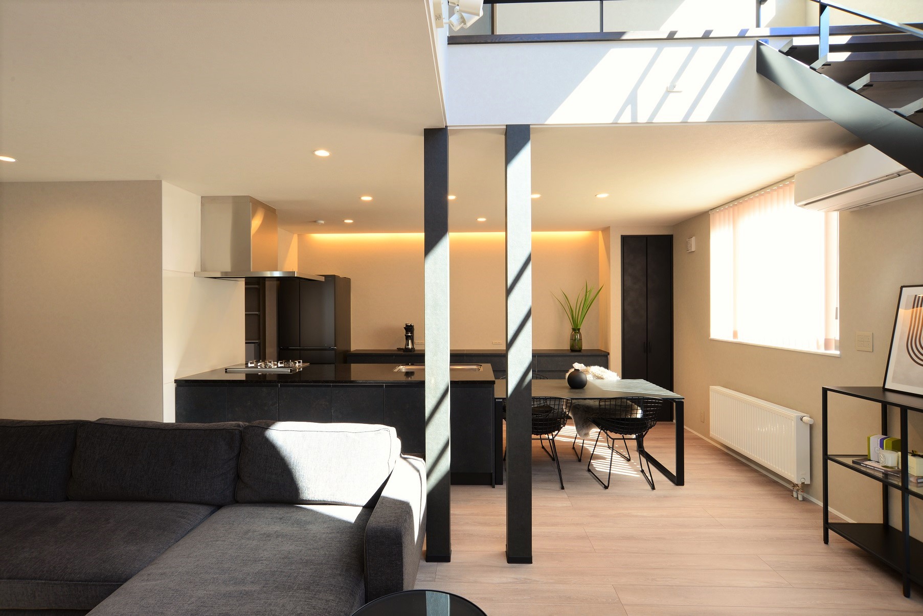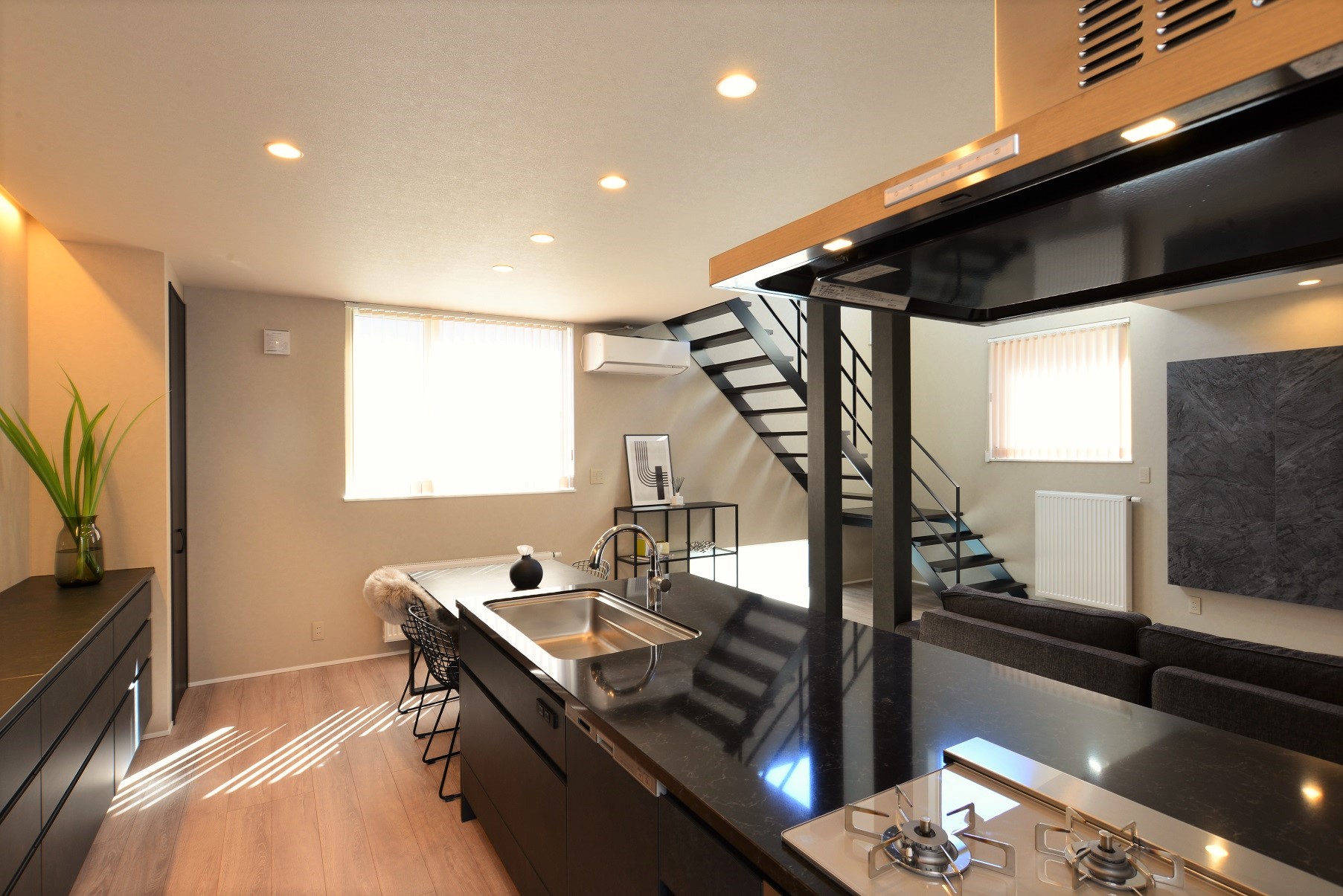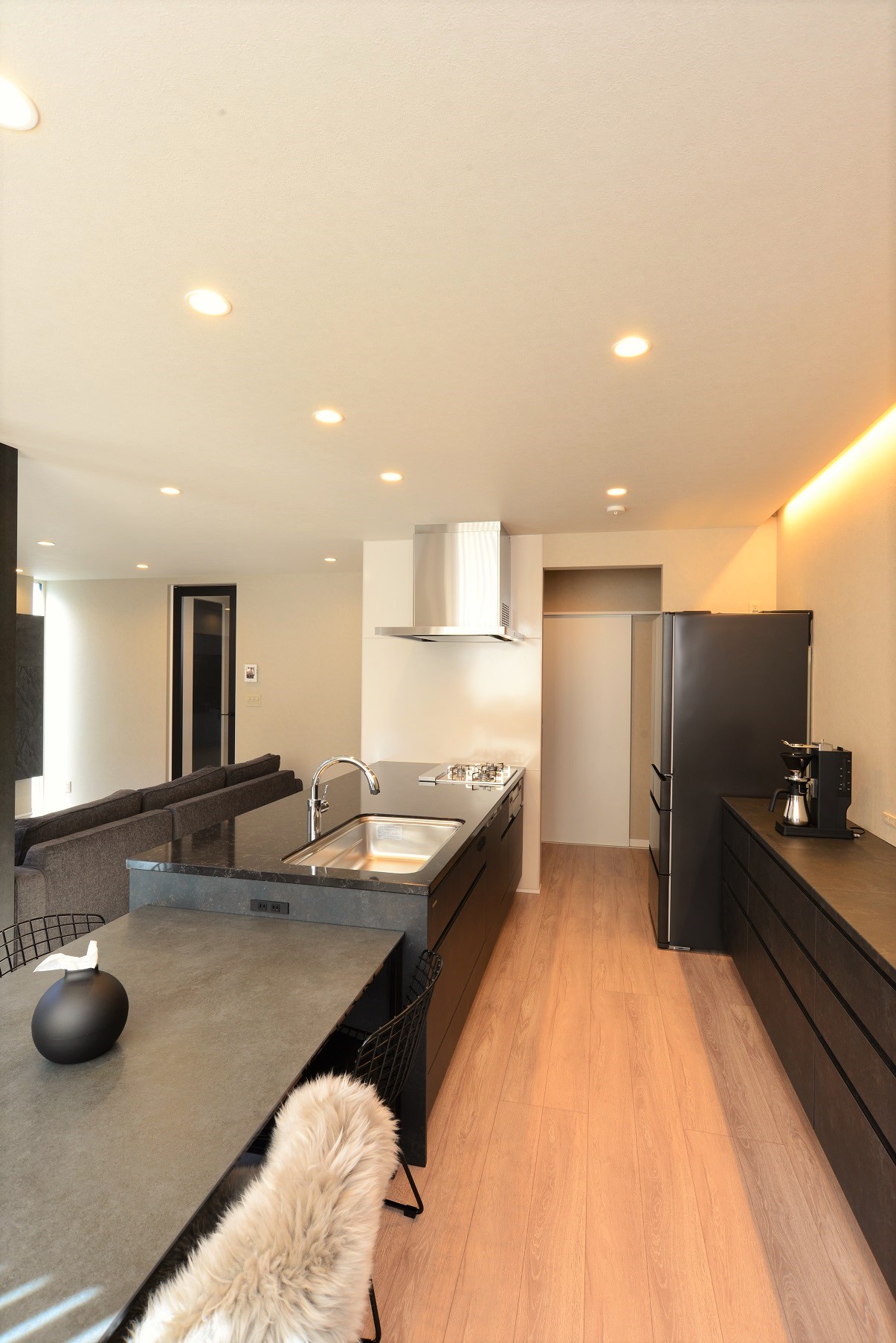 吹抜け×スタイリッシュなペニンシュラキッチンのある家