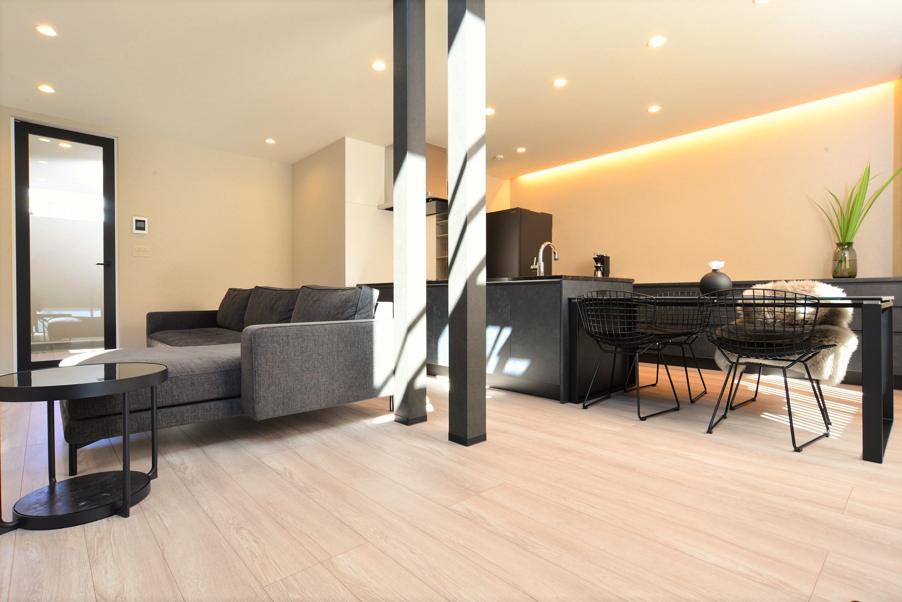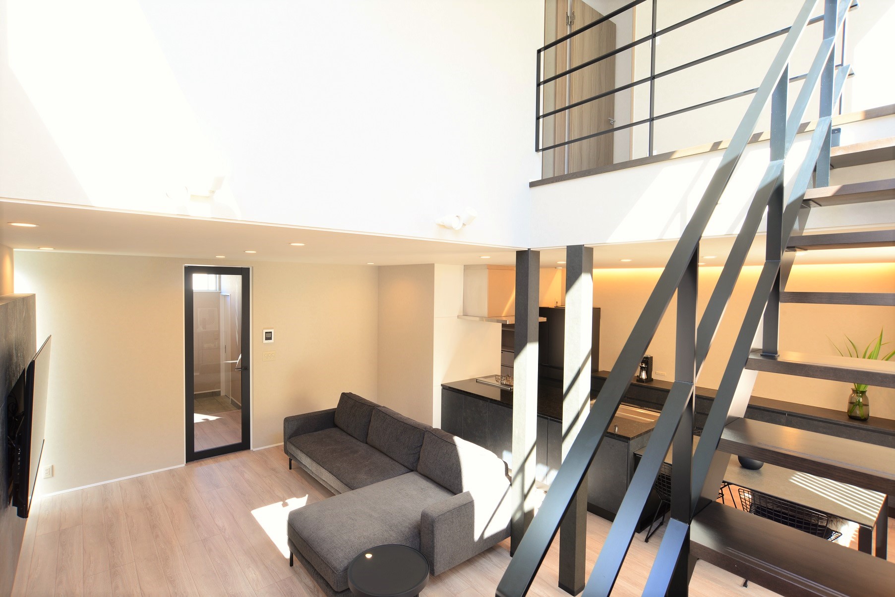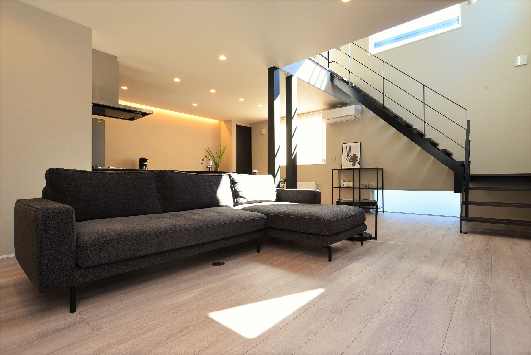 吹抜け×スタイリッシュなペニンシュラキッチンのある家