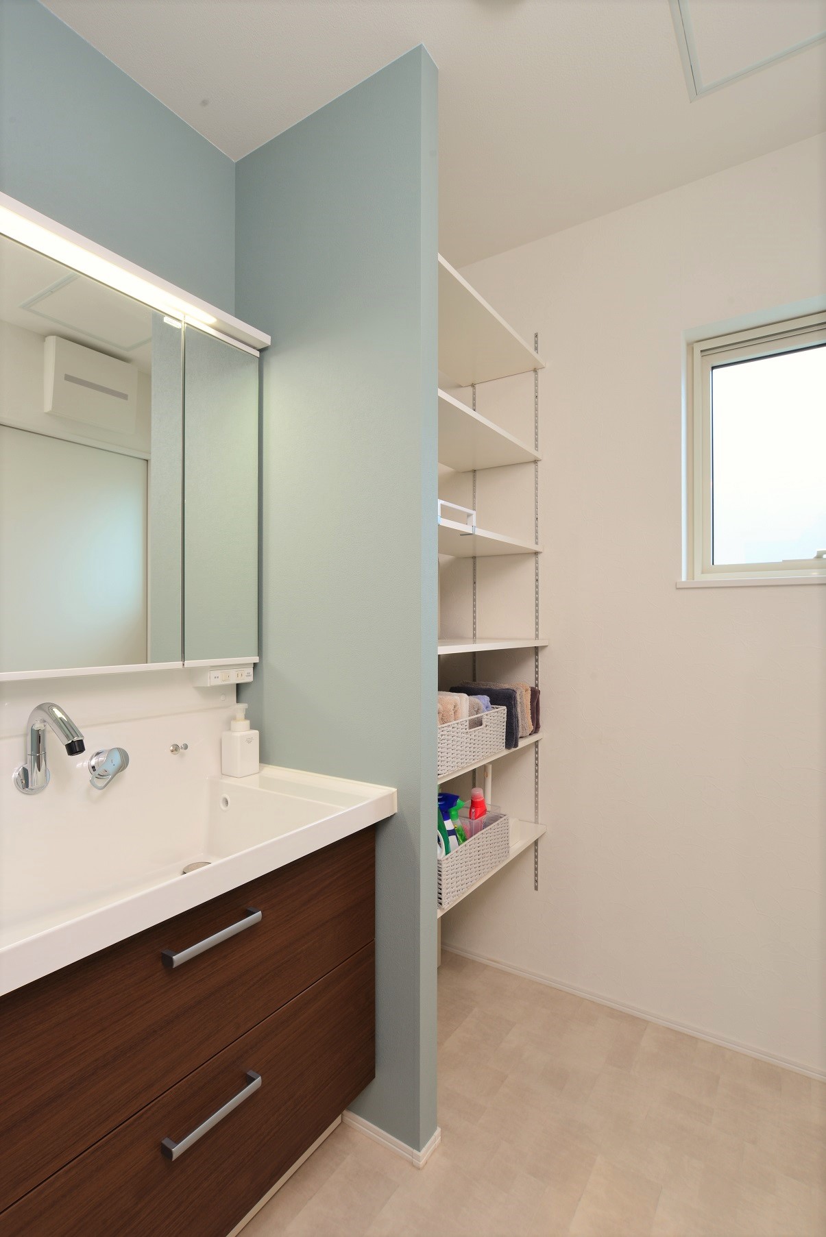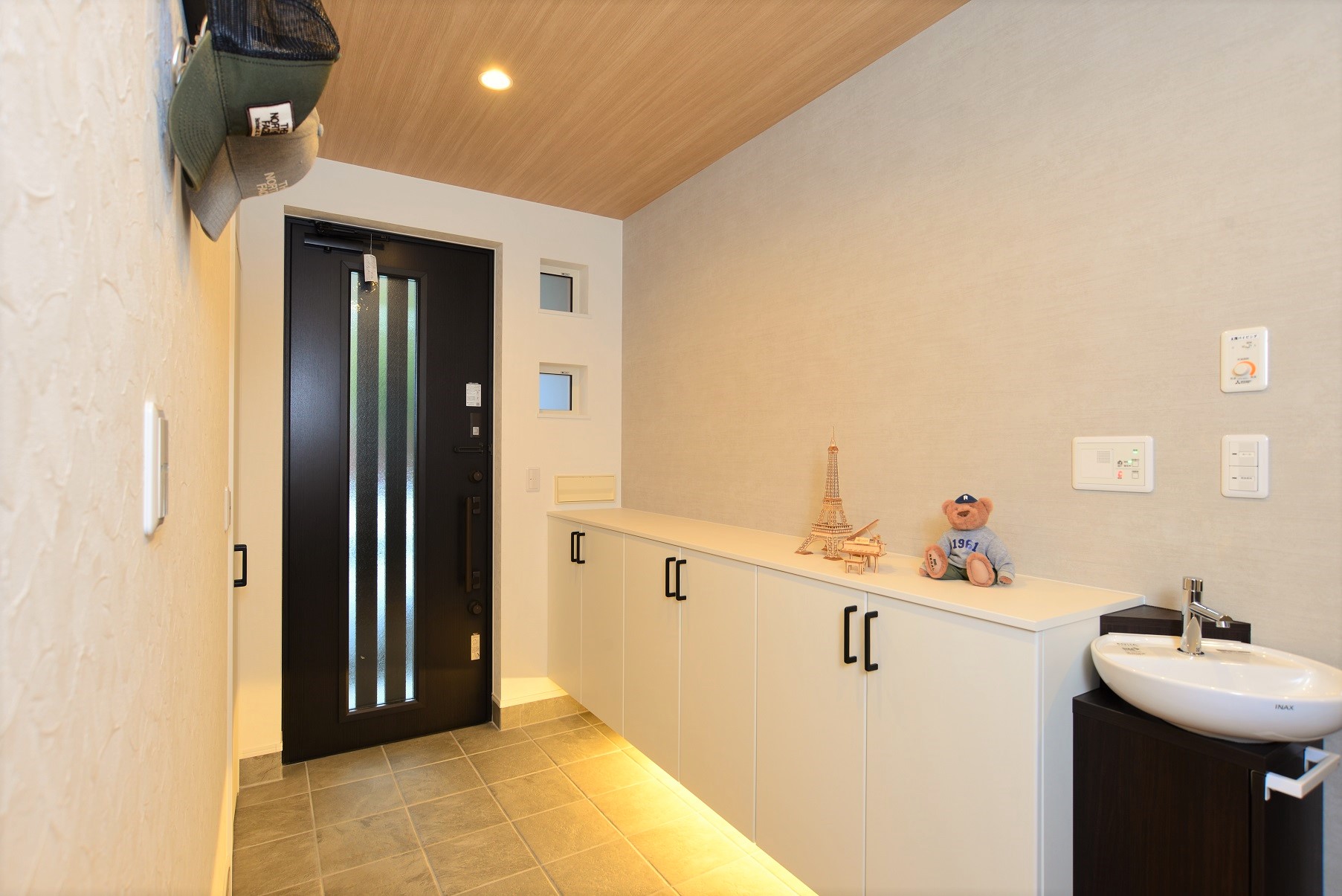 吹抜け×コーナー手洗器のある家