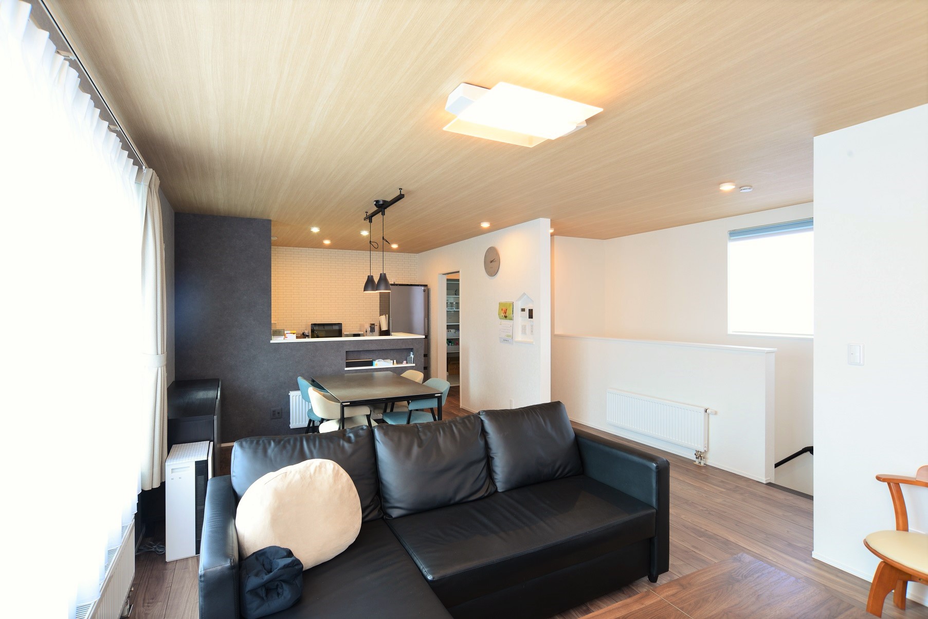 映えるクロス×自然を眺めるフリースペースのある家