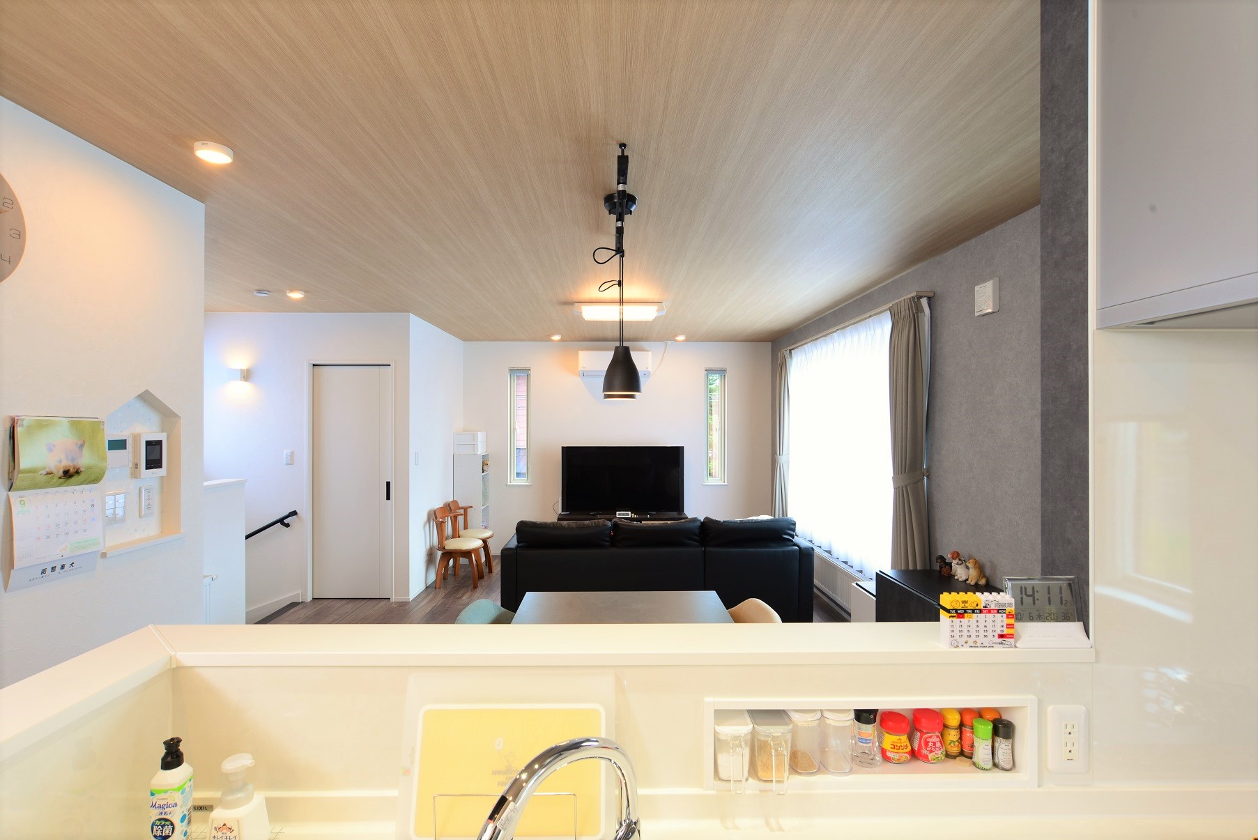 吹抜け×スタイリッシュなペニンシュラキッチンのある家