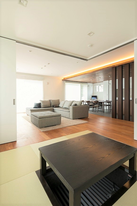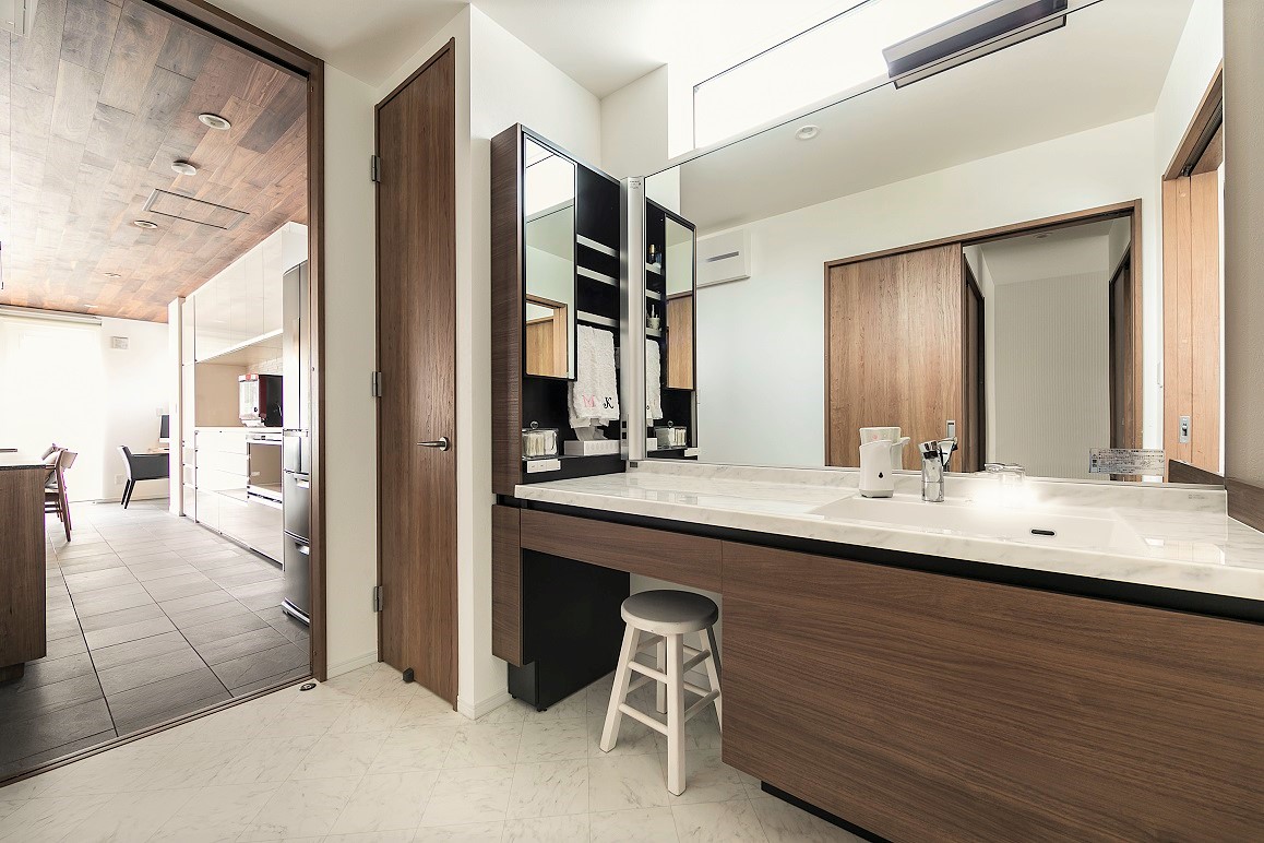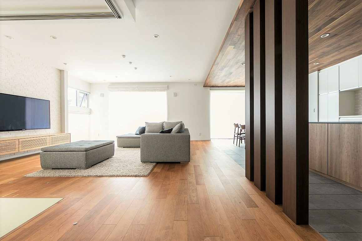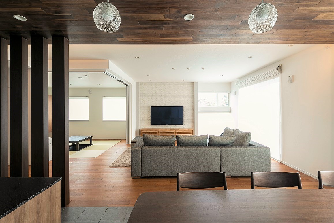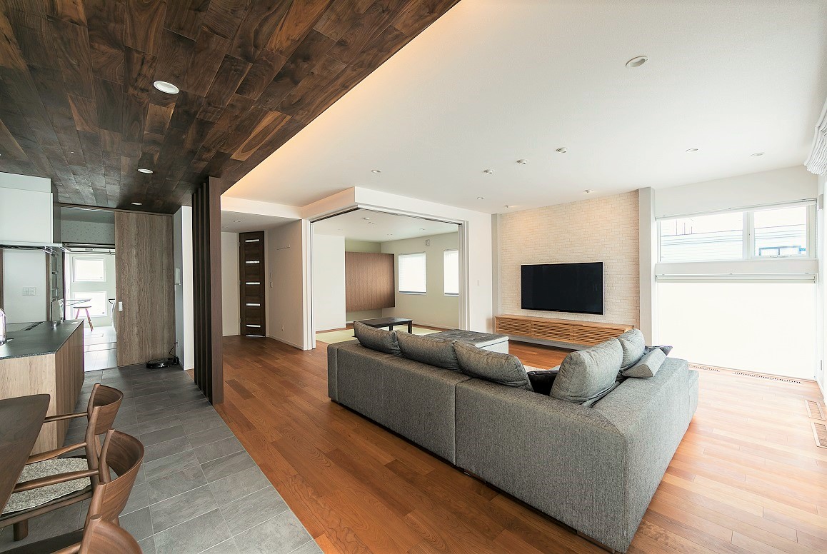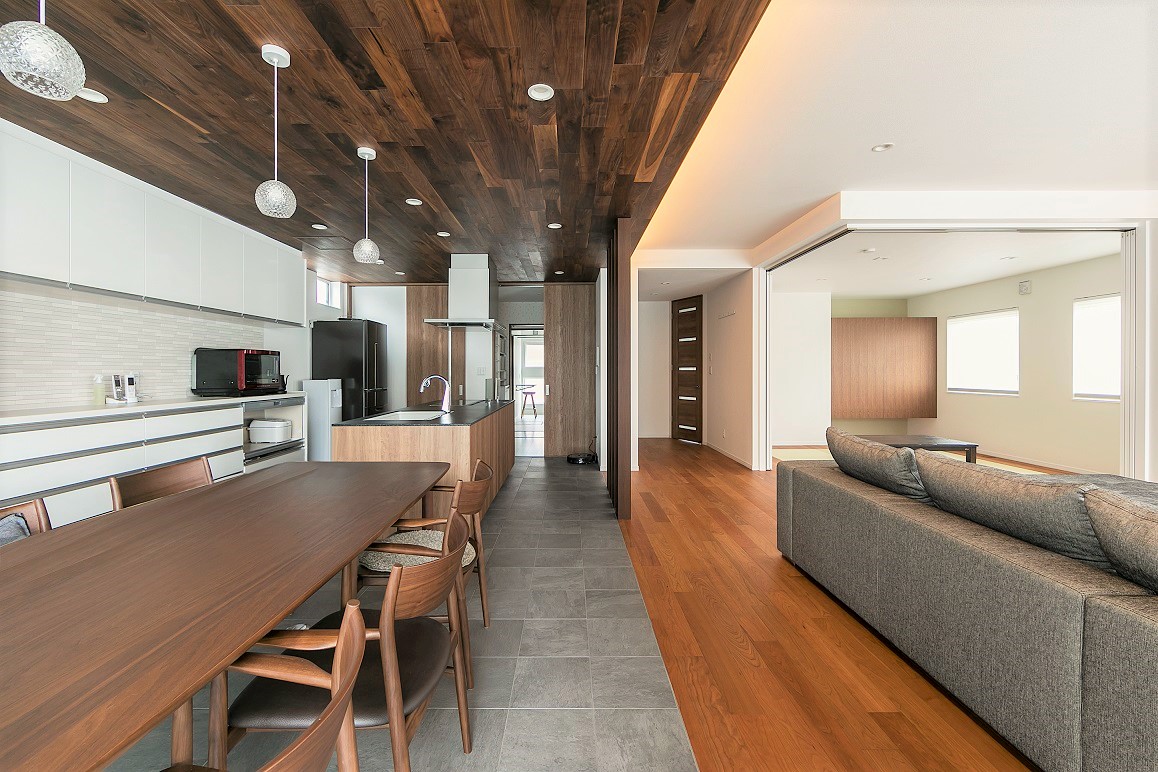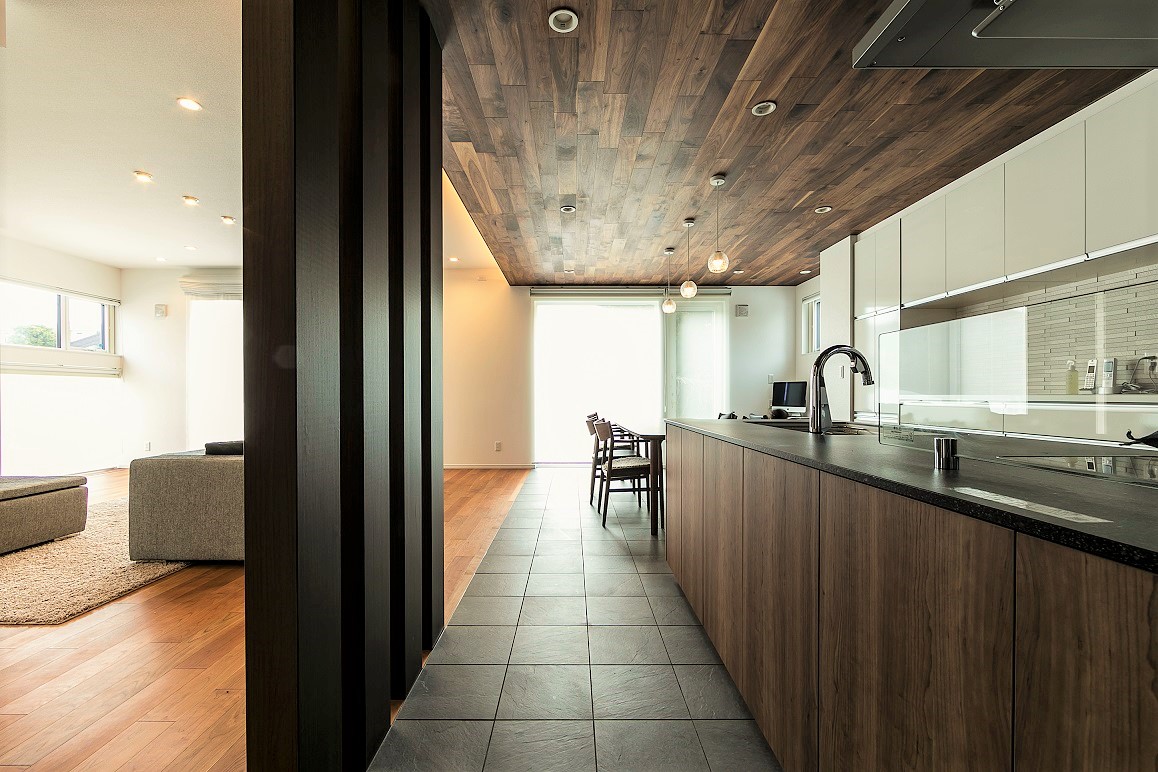 吹抜け×スタイリッシュなペニンシュラキッチンのある家