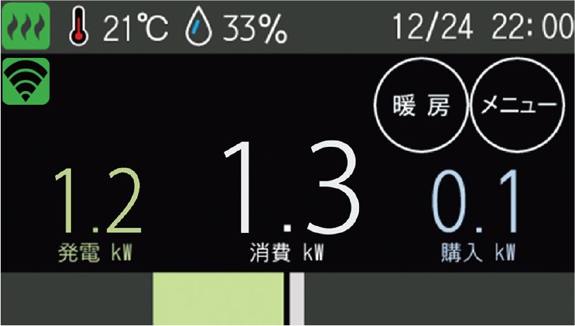 画面を変えると室温・湿度・発電実績も